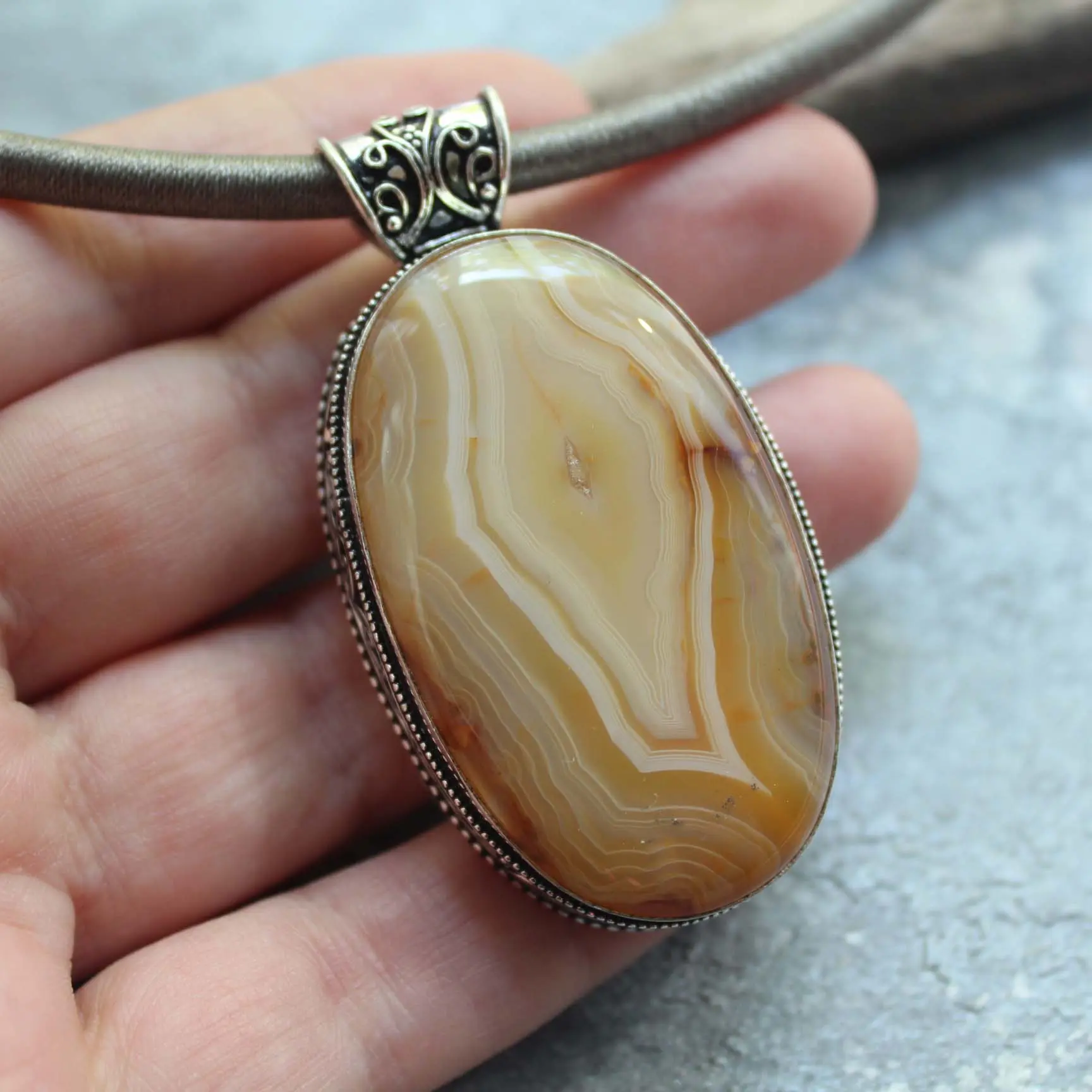 Подвеска из среза слоистого агата, серебра 925 пробы.