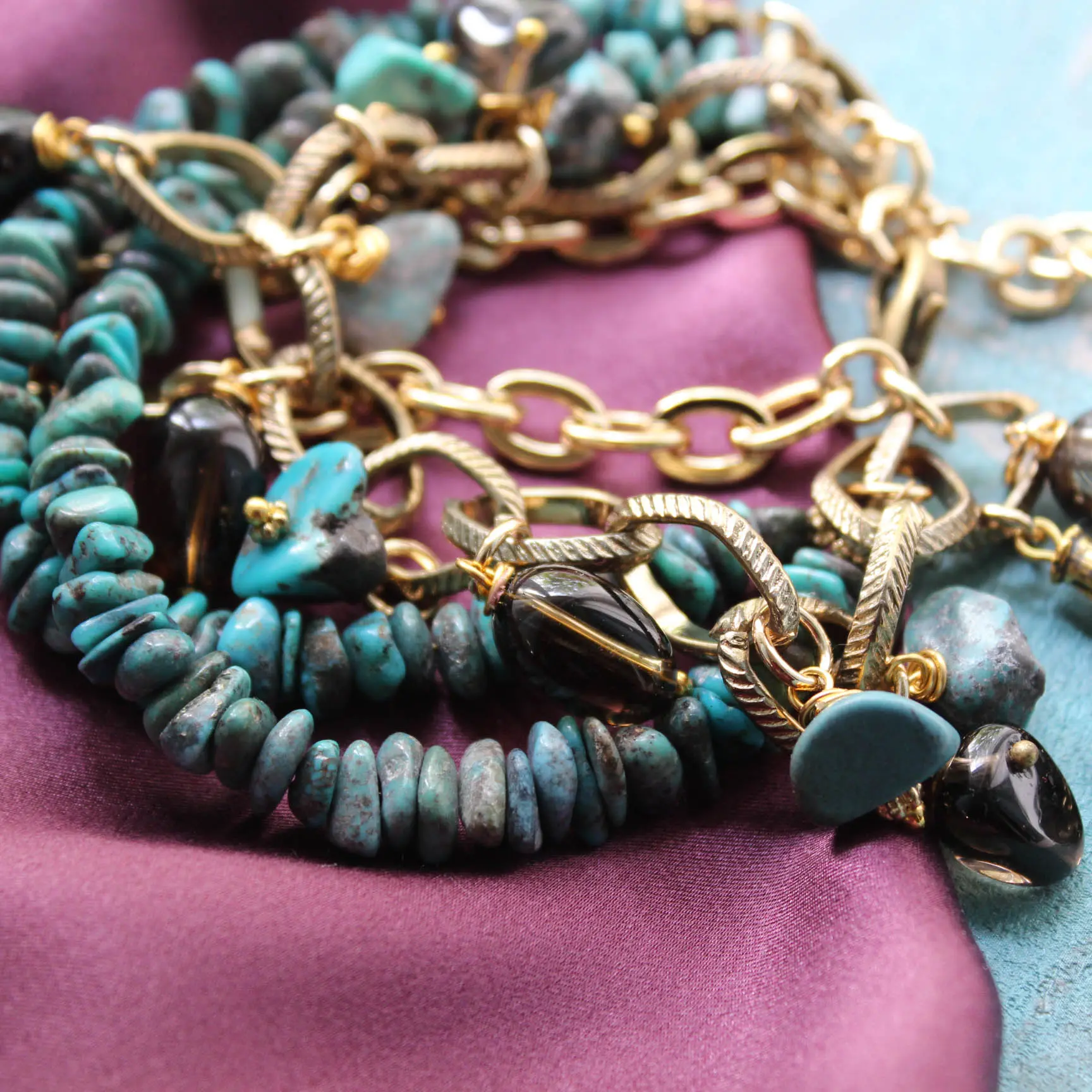 Браслет из натуральной бирюзы (шт. Аризона, США), раухтопаза (дымчатого кварца), латунной фурнитуры ручной работы (Италия).