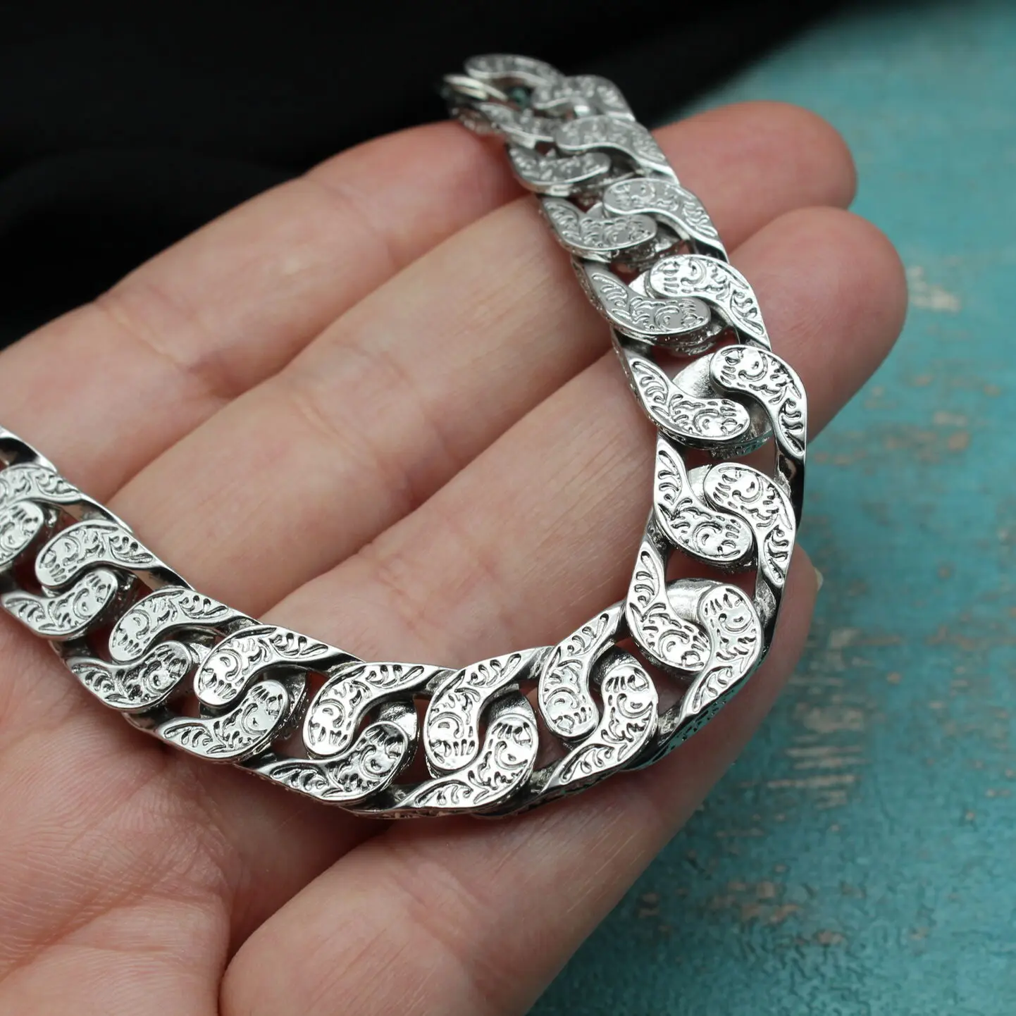 Браслет из стильной цепи необычного дизайна с деликатным орнаментом и родированным покрытием (р-ка Корея).