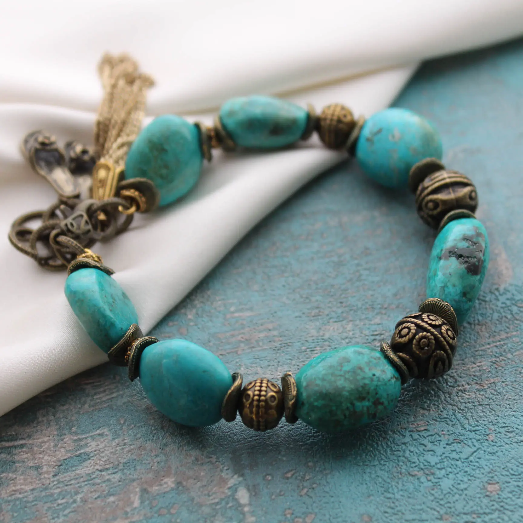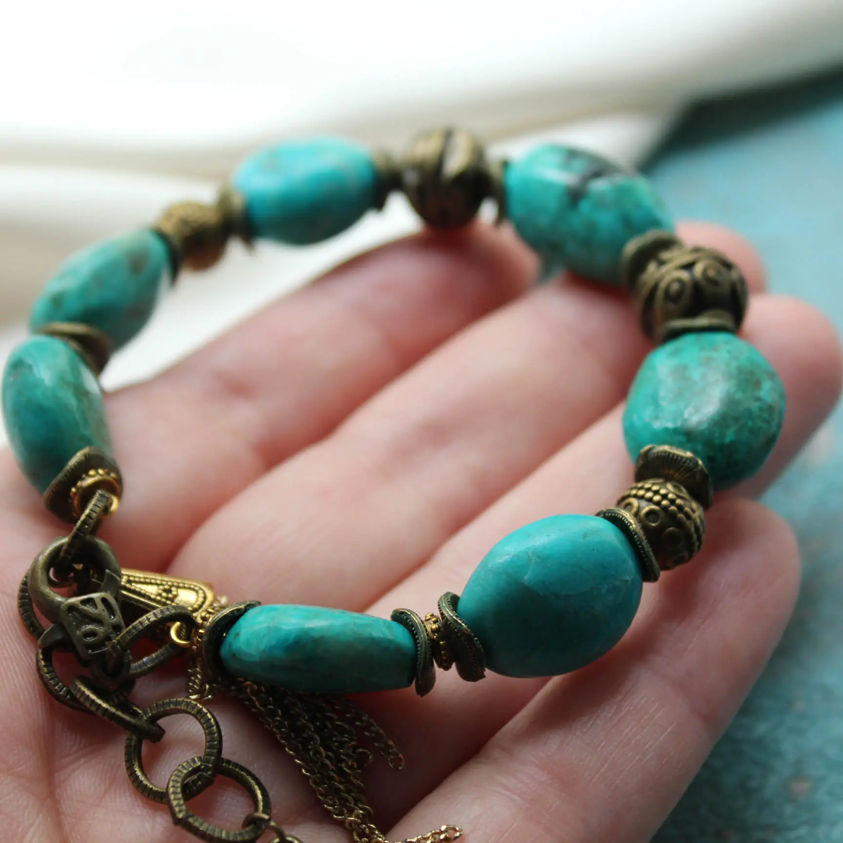Браслет из натуральной хризоколлы (стабилизированной), бронзы.