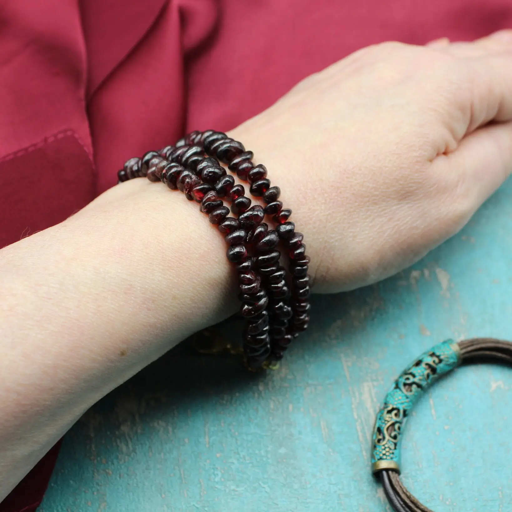 Один браслет из натурального граната, второй из кожи, хлопка, бронзы.