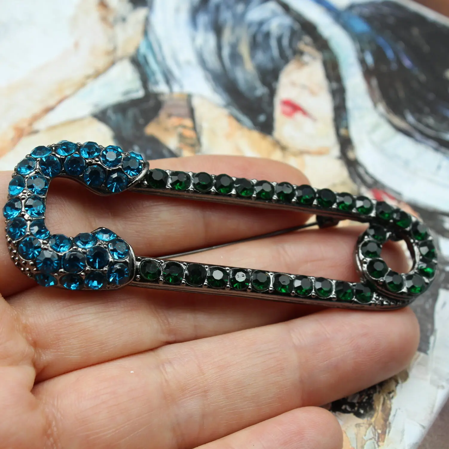 Брошь булавка из металлического сплава, разноцветных кристаллов.