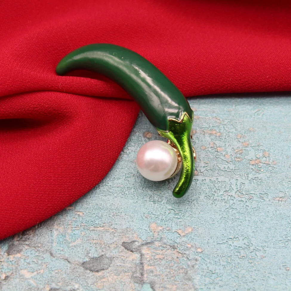 Невероятно эффектная и привлекательная брошь в виде острого зеленого перчика чили!
