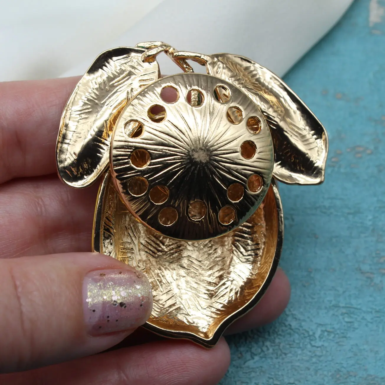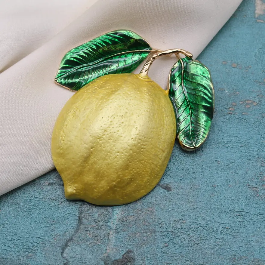 Брошь магнитная в виде лимона из разноцветной эмали, позолоченного сплава.