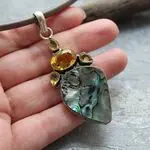 Подвеска из гелиотиса, цитрина, желтого кварца, посеребрение 925 пробы.