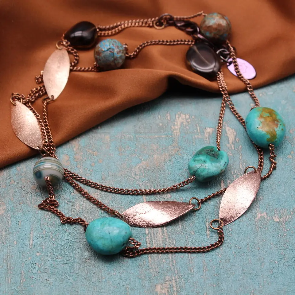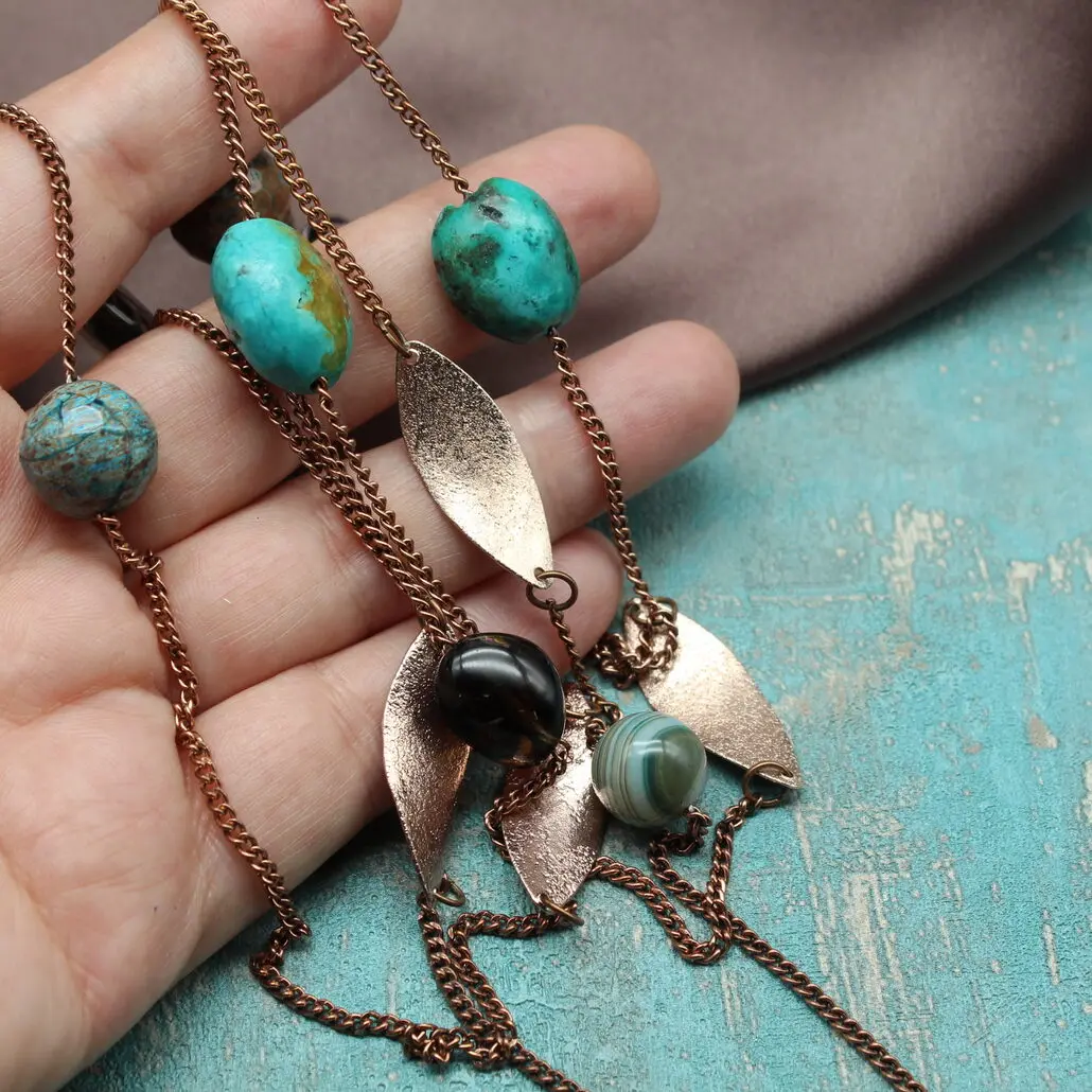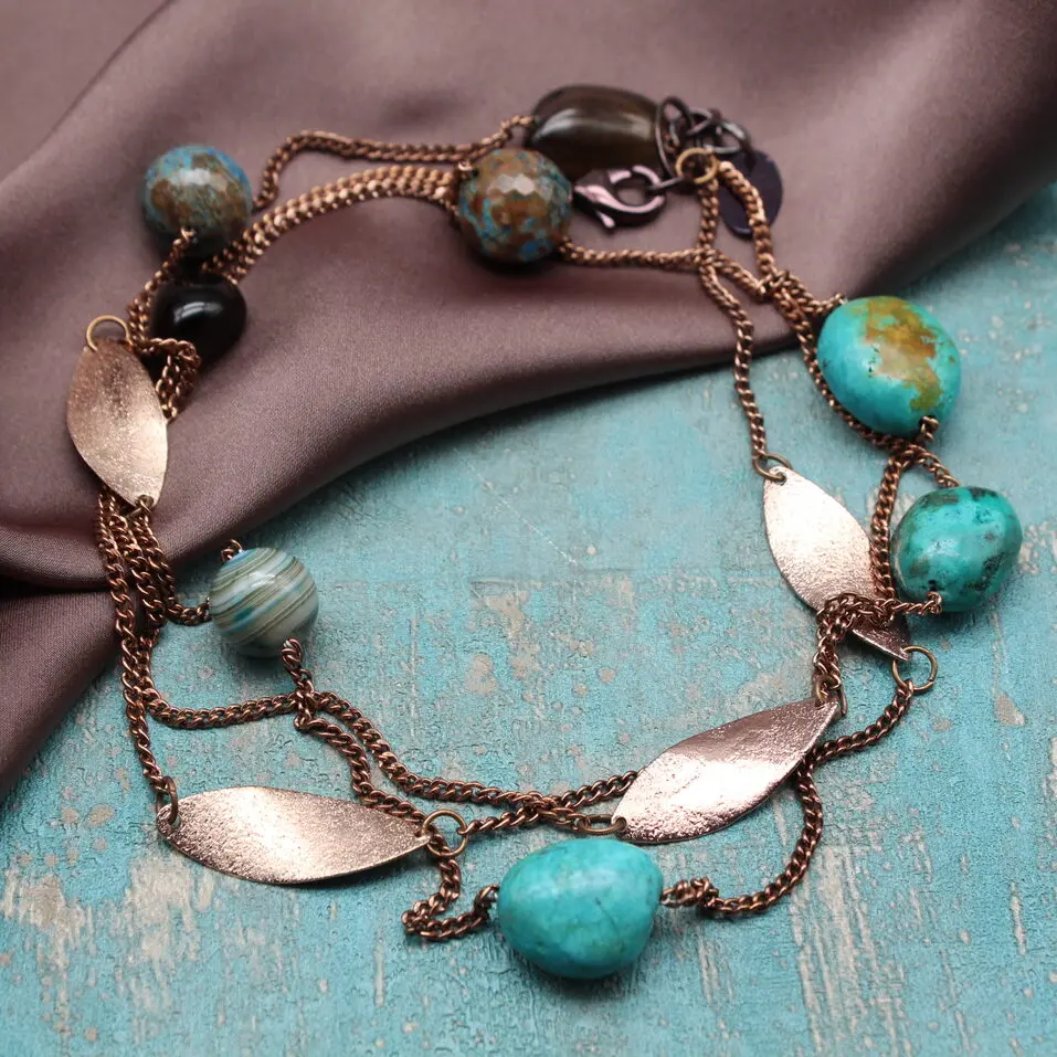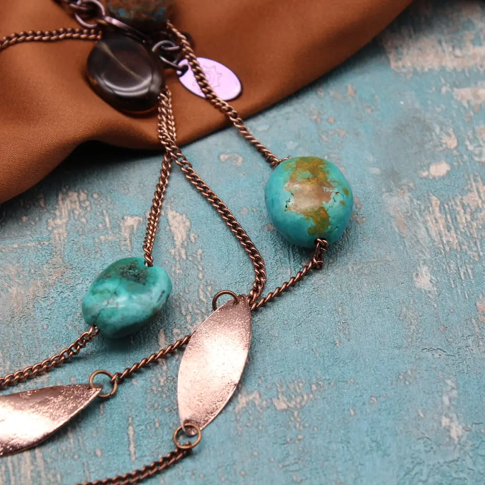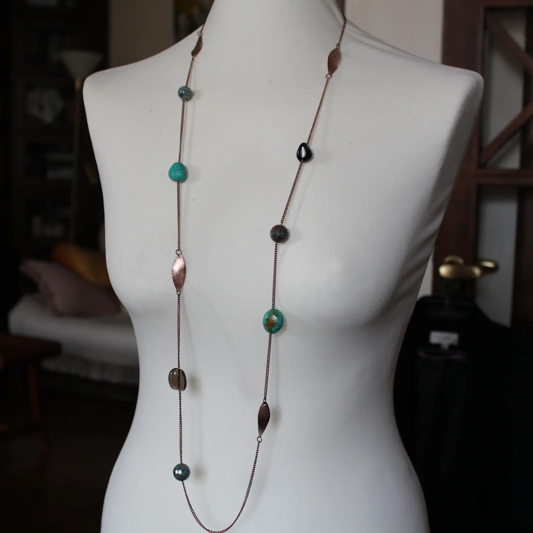 Колье-сотуар из хризоколлы, дымчатого кварца, агата декоративных элементов ручной работы из меди.
