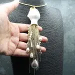 Колье с подвеской из гипса, роскошной кисти из цепочек и натурального экзотического жемчуга.