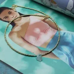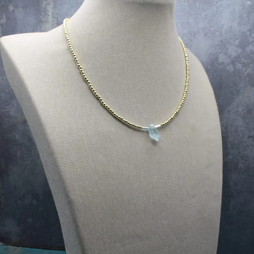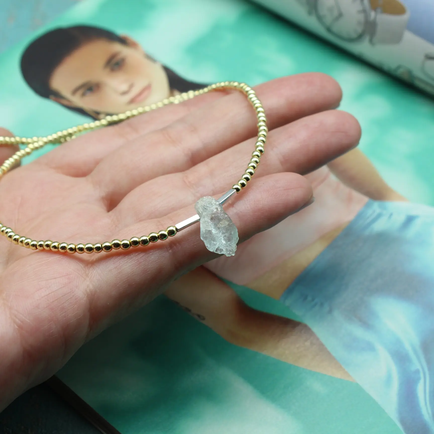 Колье чокер из натурального кристалла аквамарина, гематита, позолоченной 24К фурнитуры.