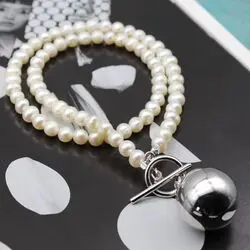 Ожерелье из белого жемчуга, подвески в виде серебрянного шара.