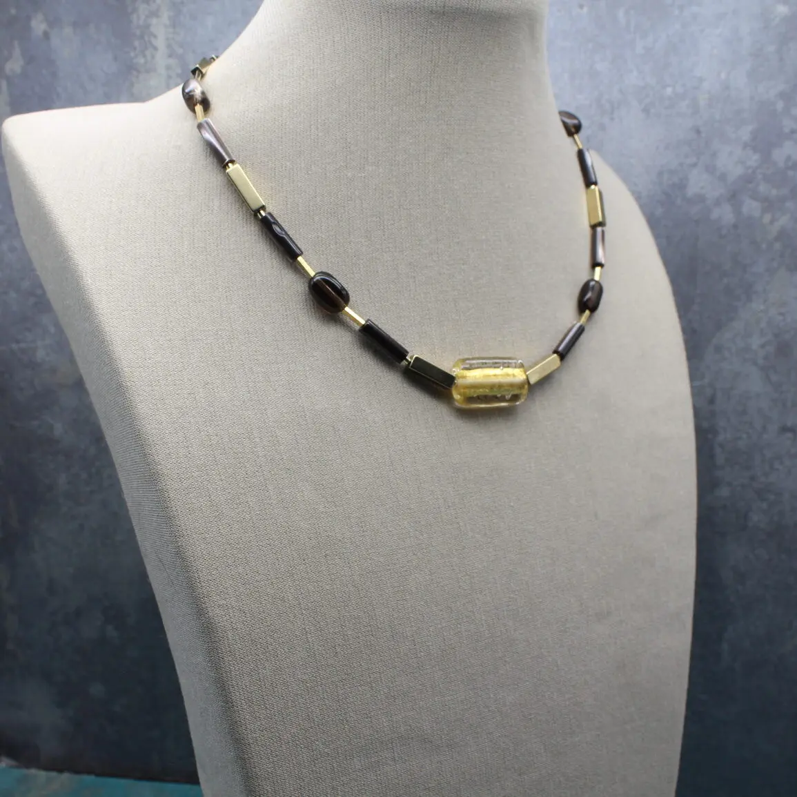 Колье из венецианского стекла, натурального раухтопаза (дымчатого кварца), натурального перламутра, позолоченной и фурнитуры.