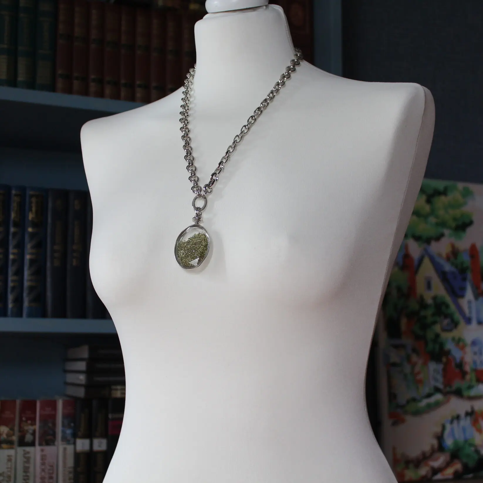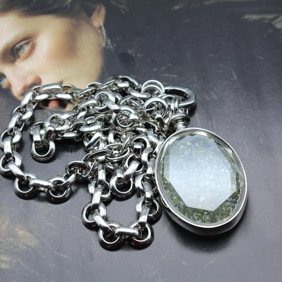 Колье из стильной цепи необычного дизайна посеребренной с родированным покрытием (р-ка Корея) и крупной подвески из граненого стекла и кристаллов.