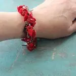 Браслет из натурального красного коралла, богемского стекла в виде стрел и гранатовых капелек, черненной фурнитуры.