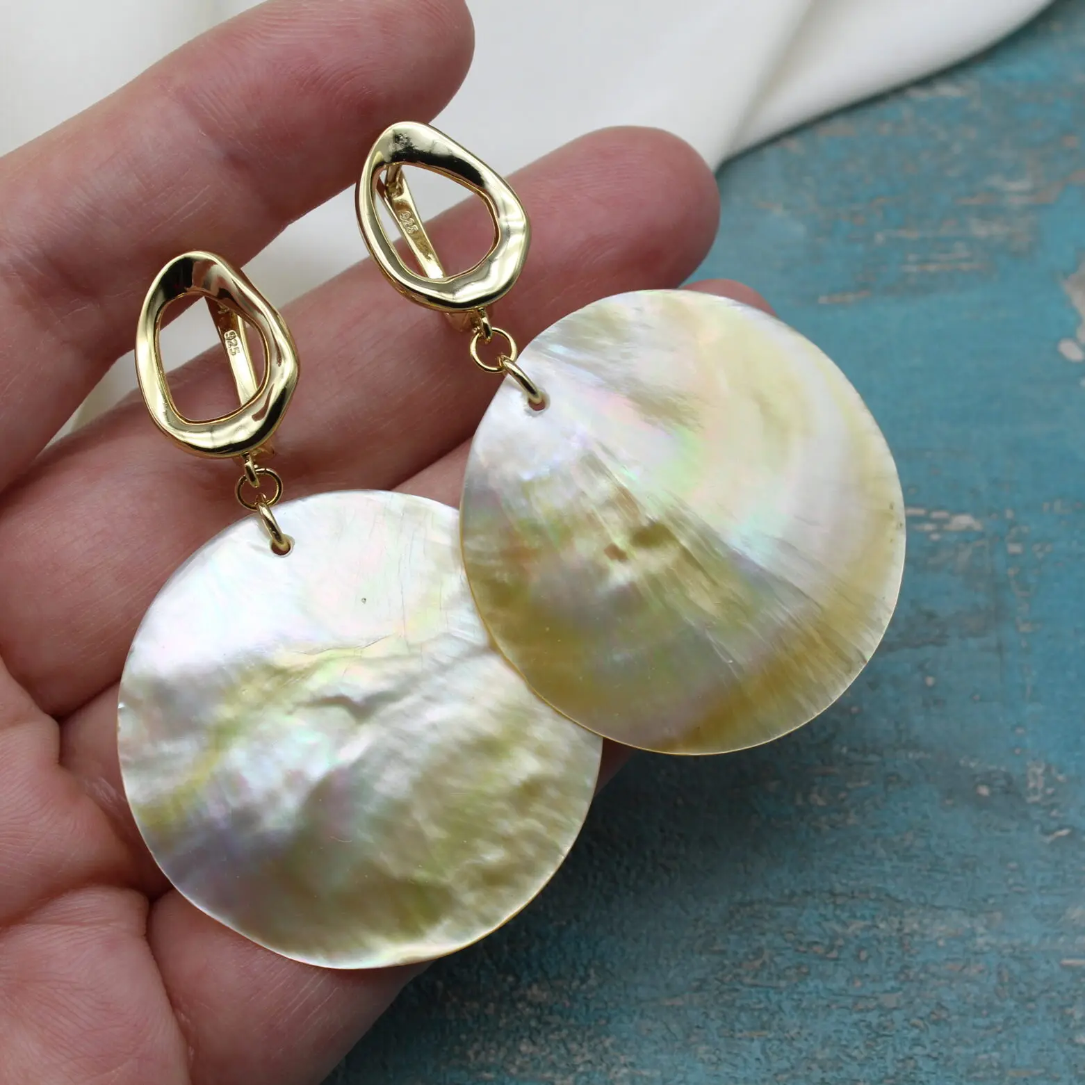 Легкие, оригинальные, заметные, невероятно симпатичные серьги из потрясающего природного золотистого перламутра!
