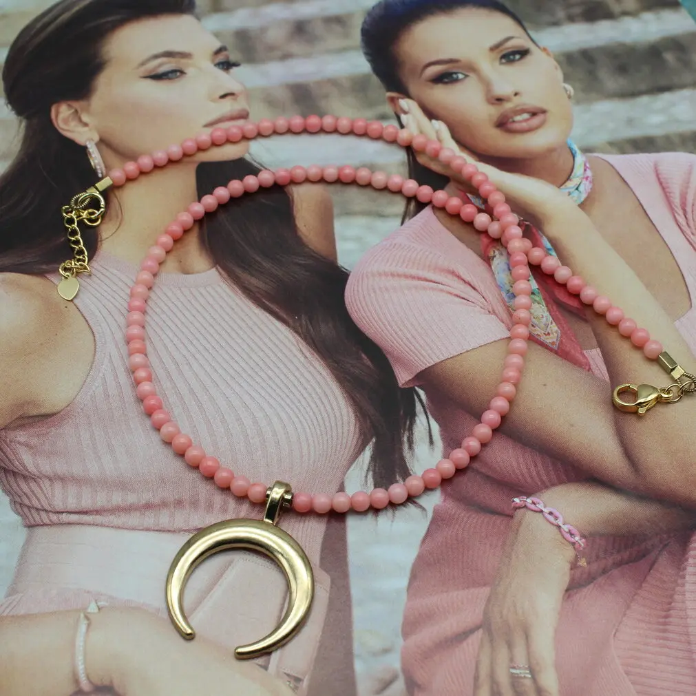 Ожерелье из натурального розового коралла, посеребренной фурнитуры.