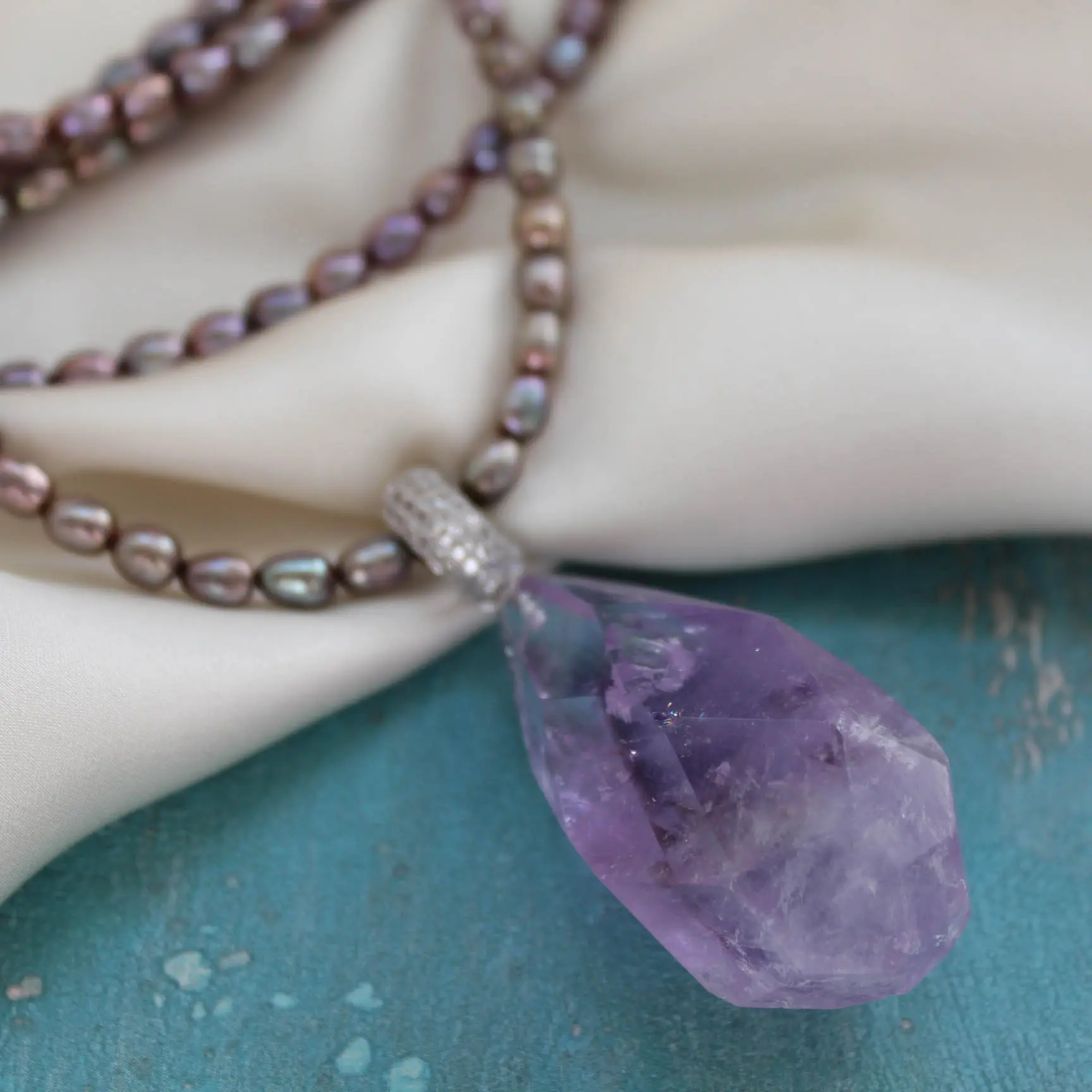 Ожерелье из натурального сиреневого жемчуга, аметиста.
