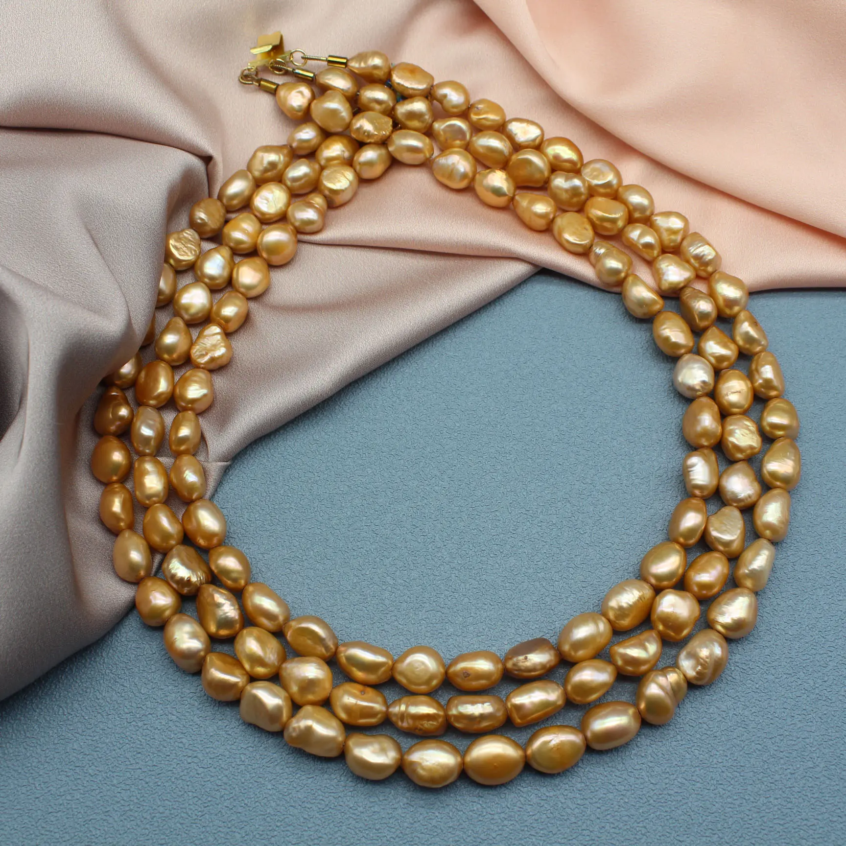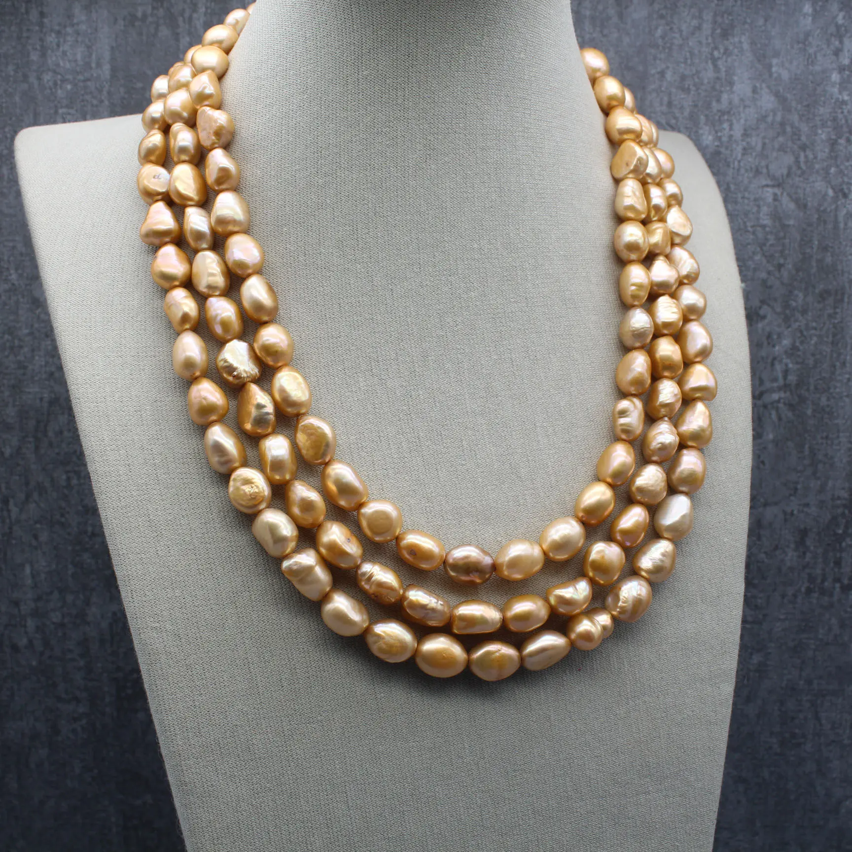 Украшение трехрядное, отлично держит форму, идеально подогнаны жемчужины и длины нитей - смотрится как сплошное полотно!