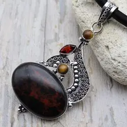 Подвеска из обсидиана, тигрового глаза, граната, посеребрение 925 пробы.