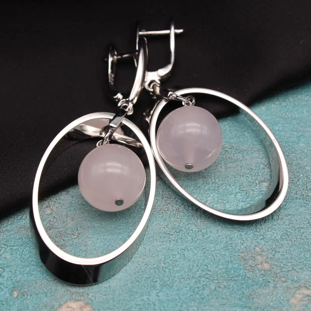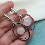 Серьги из розового кварца, серебра 925, посеребренной родированной фурнитуры.