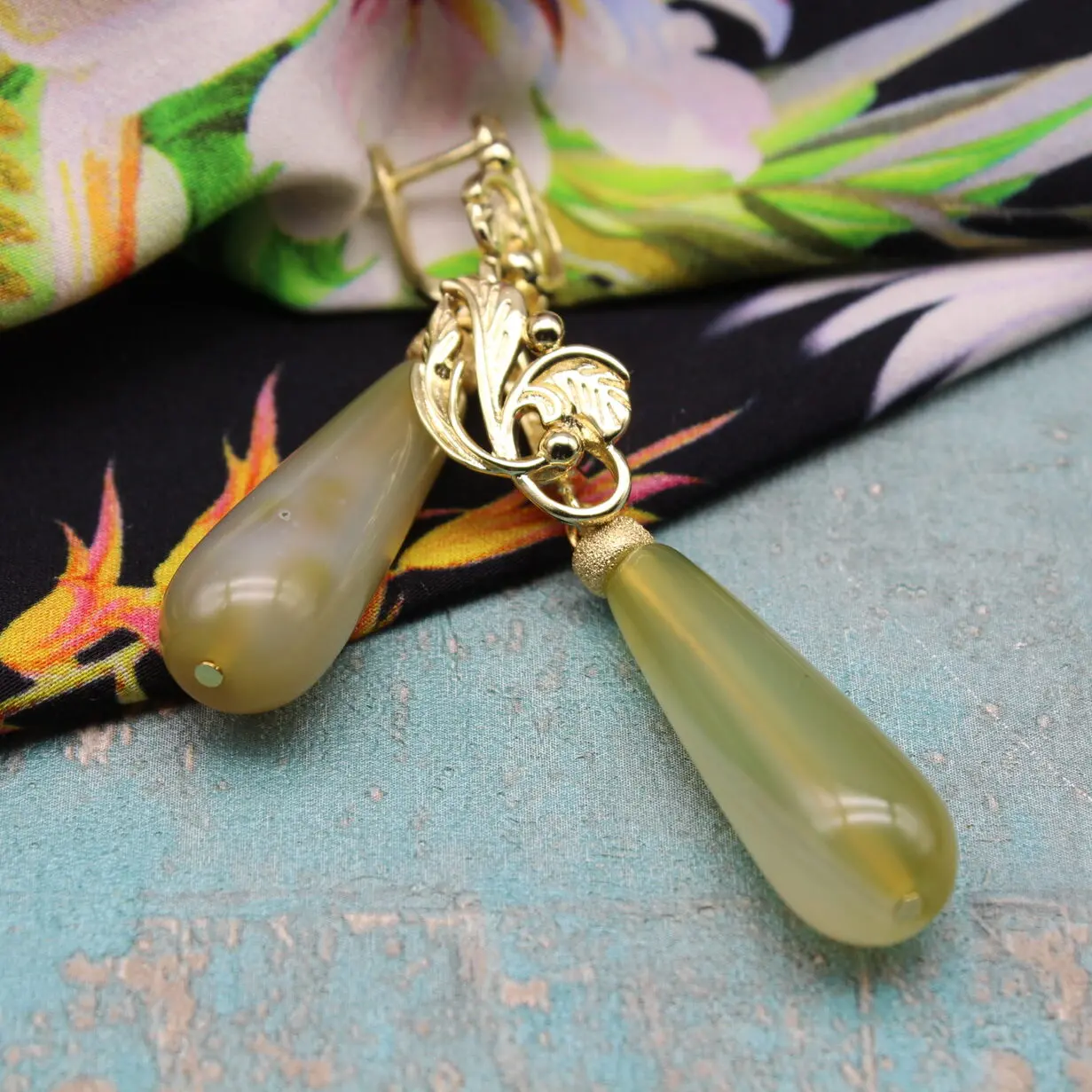 Серьги из натурального халцедона, позолоченной 24К латуни.