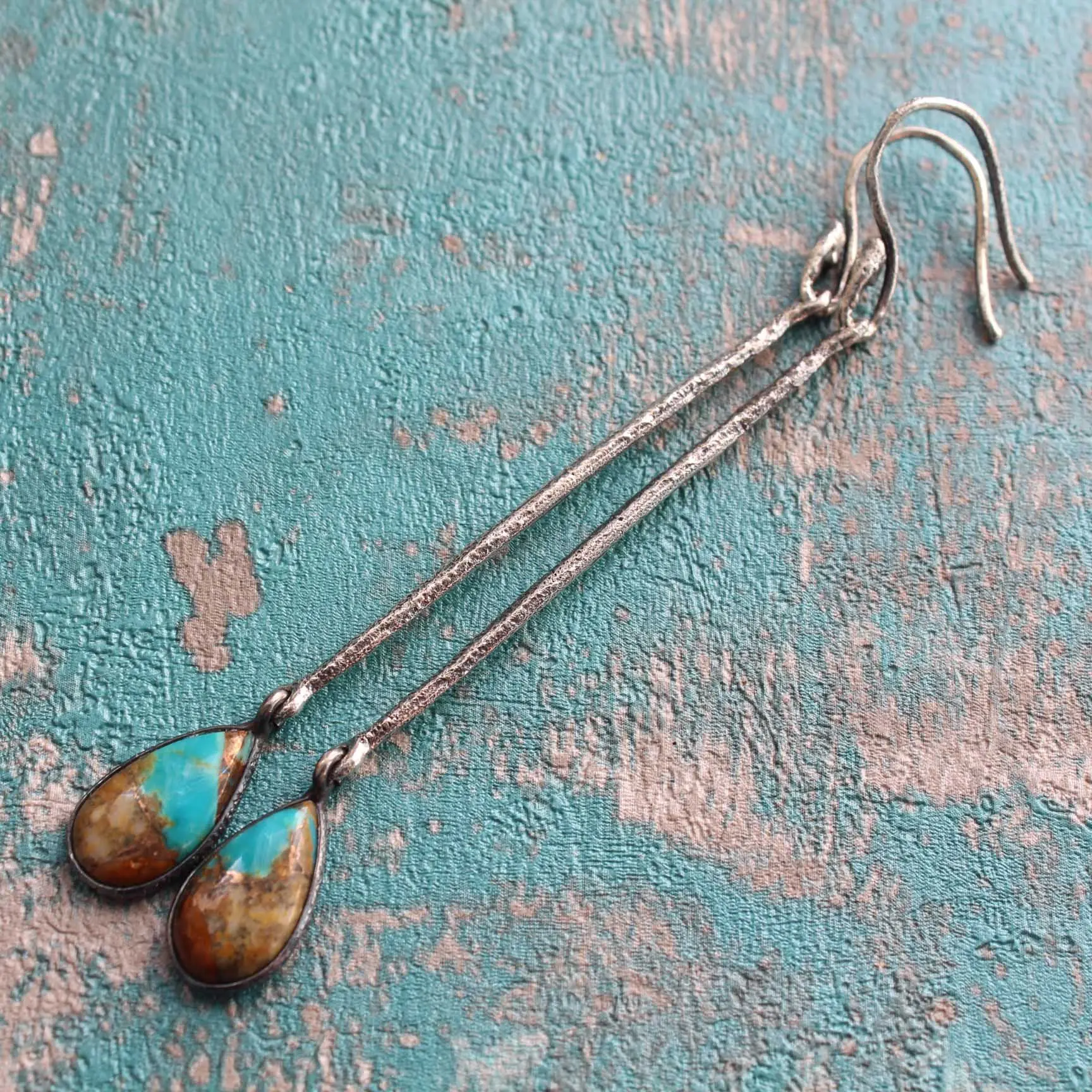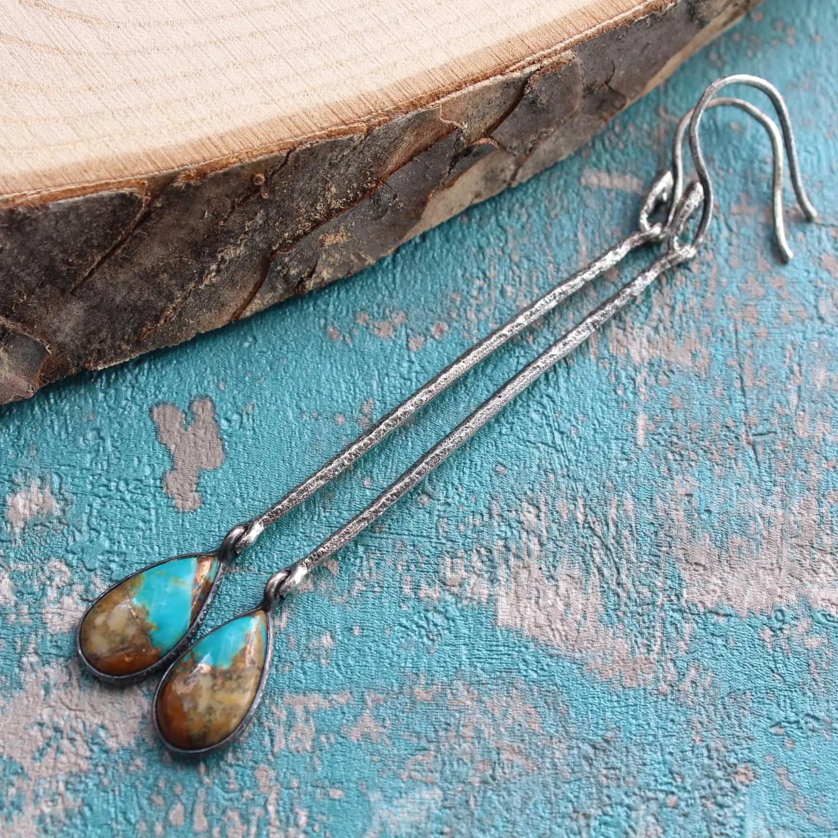 Серьги из натуральной бирюзы в породе (штат Аризона, США), серебра 925 пробы.