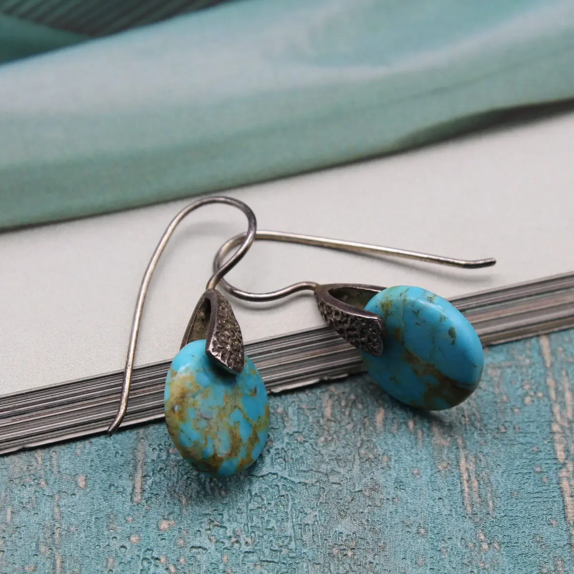 Очень элегантные, оригинальные серьги из природных срезов натуральной аризонской бирюзы!