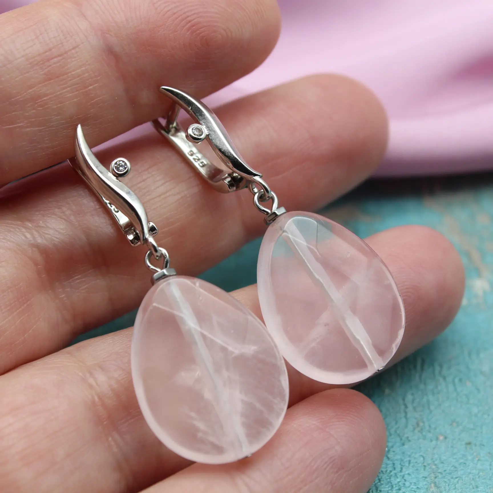 Очень нежные, изысканные серьги из природного розового кварца, как капли!