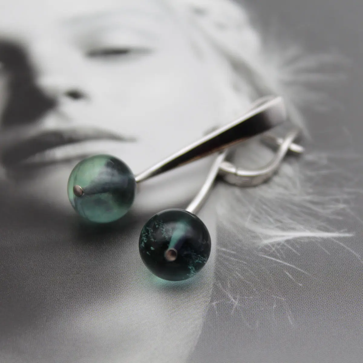 Легкие, эффектные, изящные серьги, хороши, как в дуэте с ожерельем или браслетом, так и, соло!Невероятно красивый, изысканный цвет флюорита - бирюзово-зеленого с сиреневыми включениями!