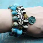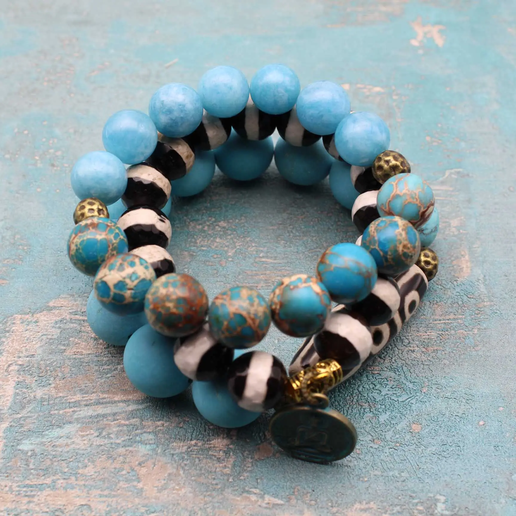 Браслеты из бирюзы (прессованной), агата дзи, варисцита, бусины дзи 9 глазка, бронзовой фурнитуры.