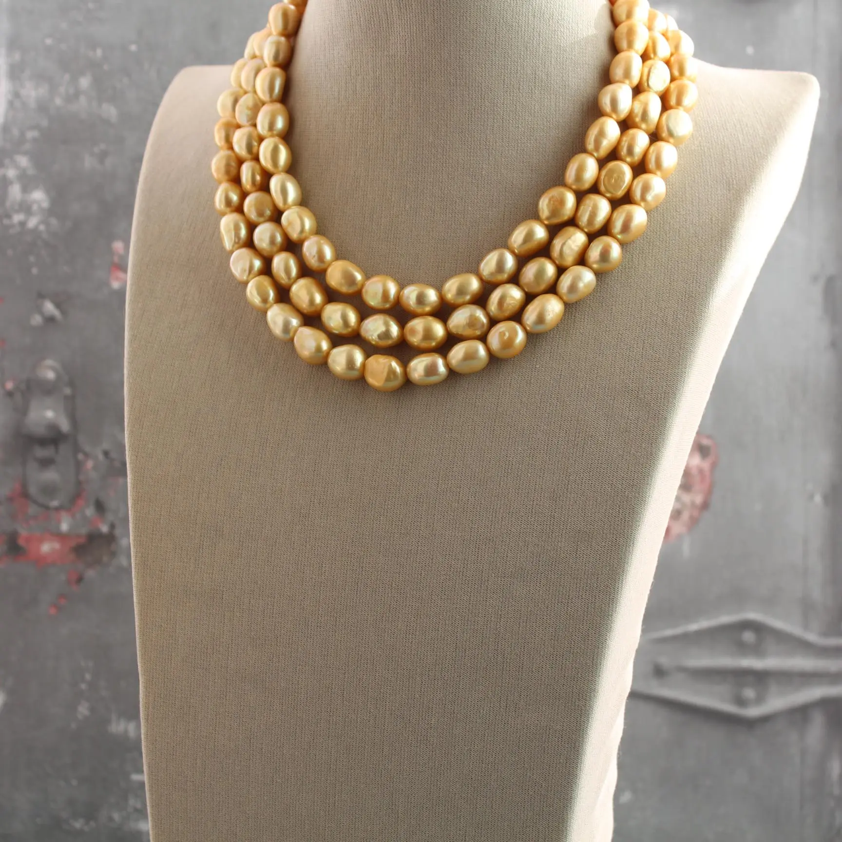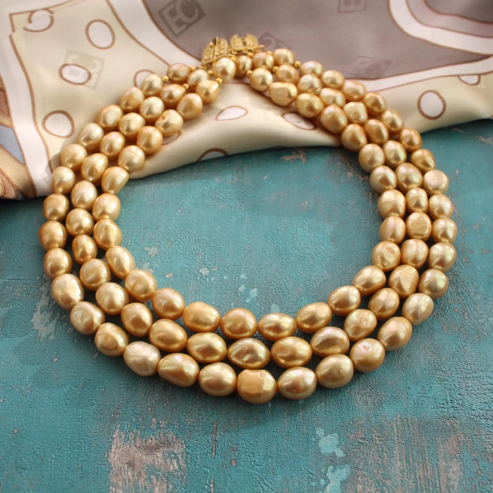 Исключительное качество и потрясающий золотистый оттенок жемчужин смотрится изумительно, словно золотые слитки!