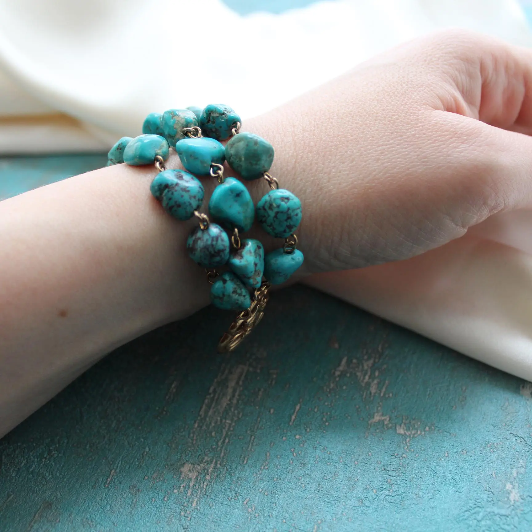 Трехслойный браслет из натуральной бирюзы (Аризона), бронзы.
