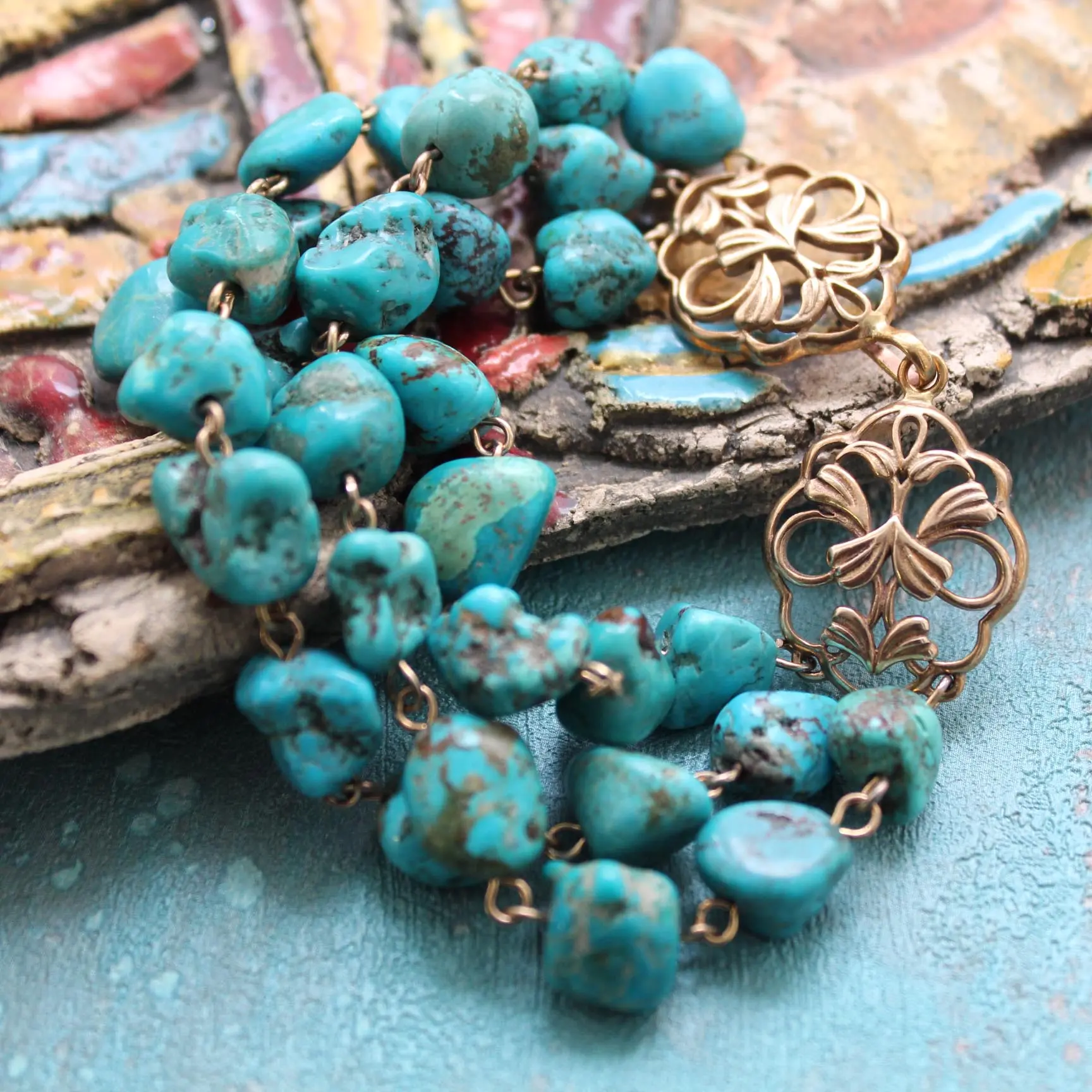 Потрясающий цвет натурального камня, эффектная бронзовая застежка в античном стиле! Изумительное украшение из редких камней - самородки идеально подобраны по цвету и форме!