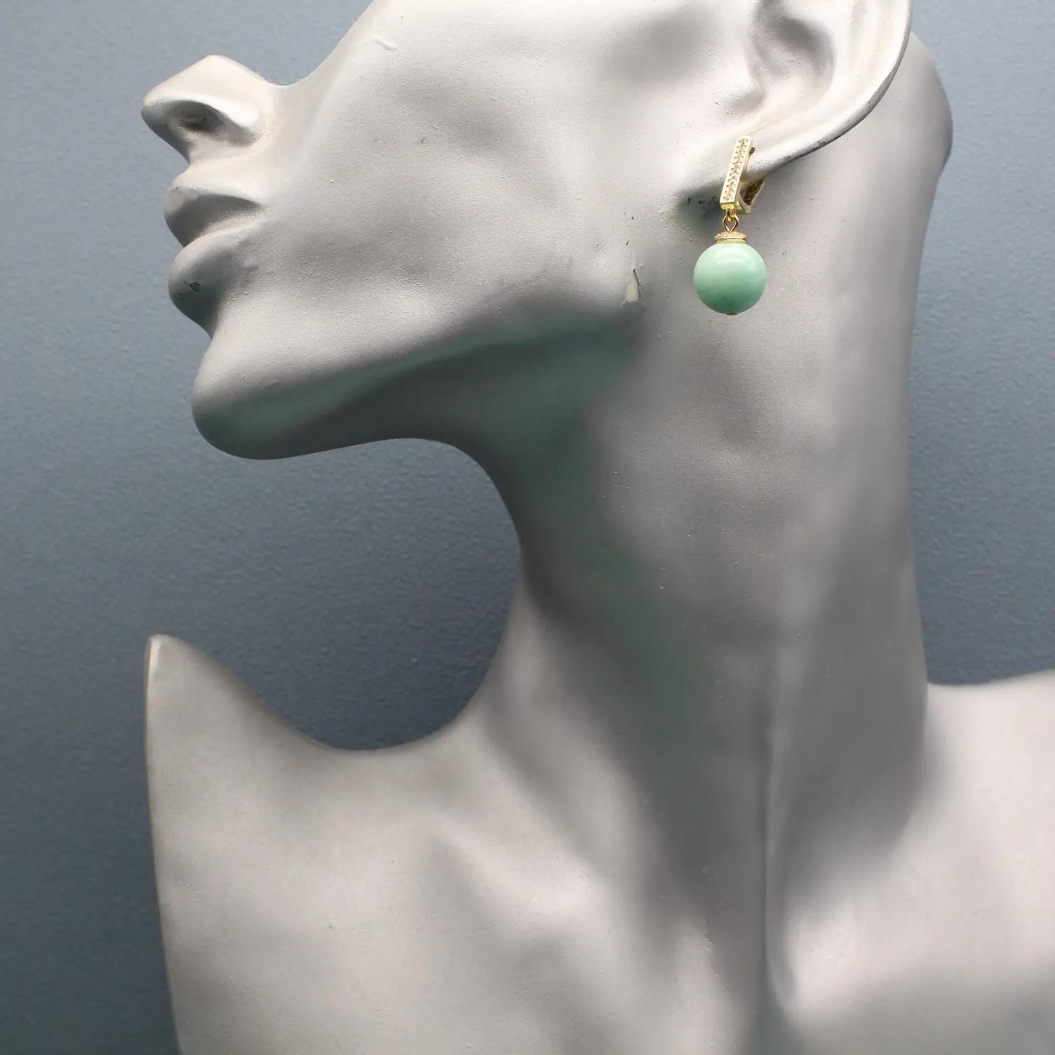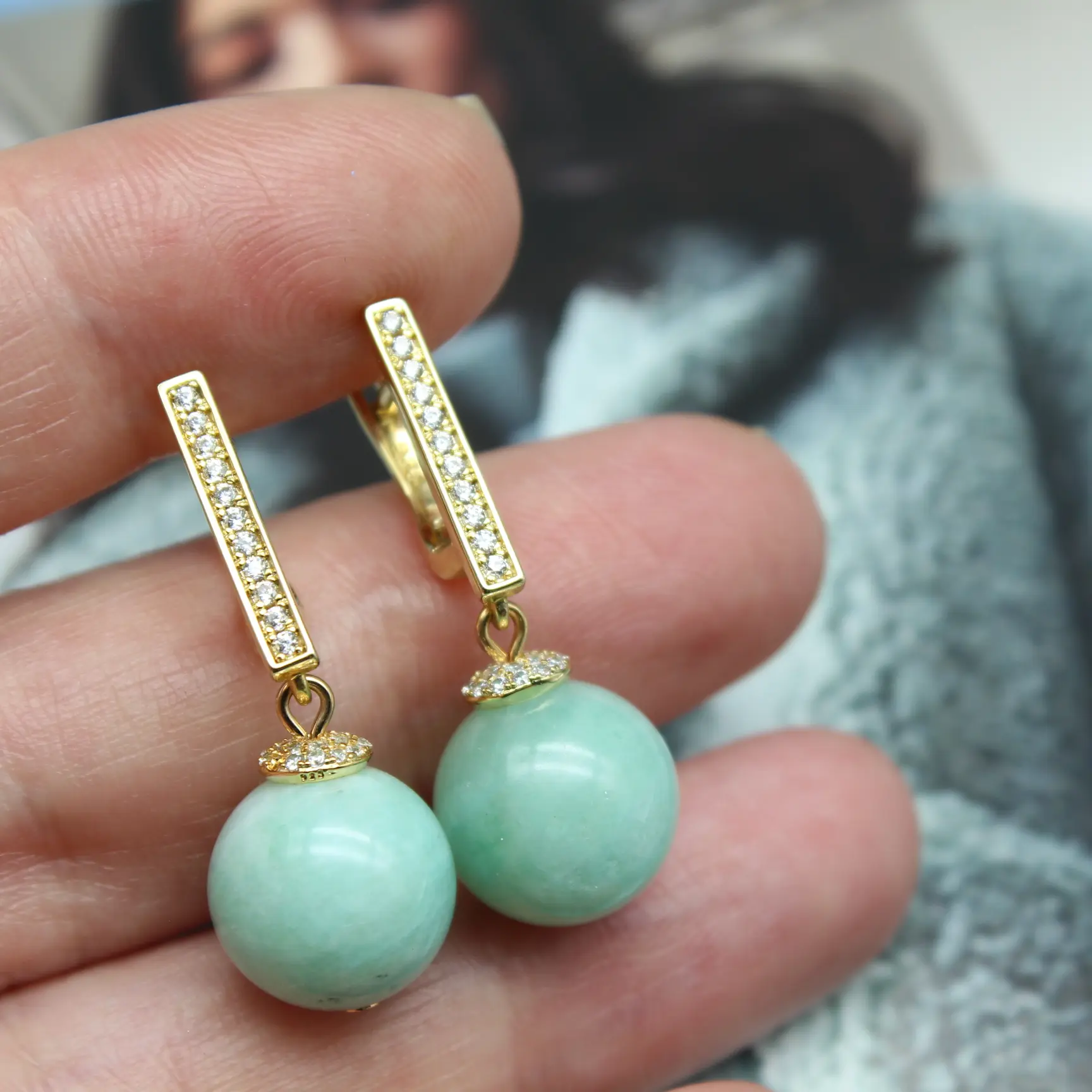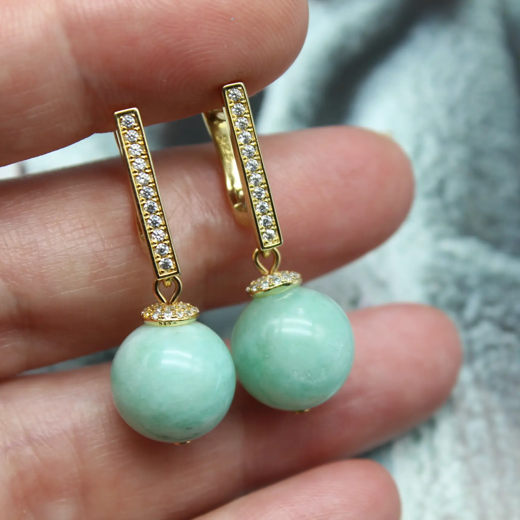 Серьги из амазонита, позолоченной фурнитуры 24К с родиевым покрытием и цирконами.